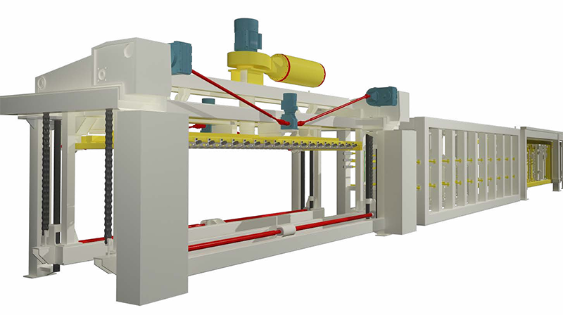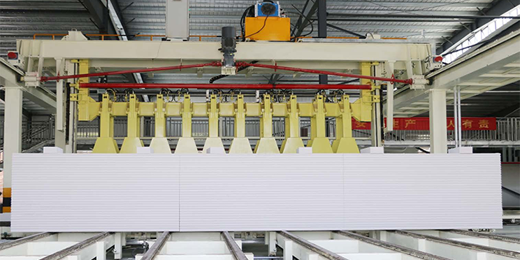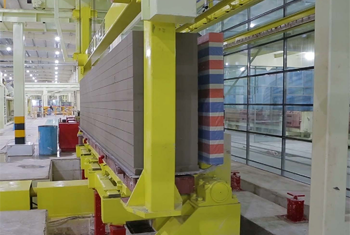 切割機組是加氣板材生產(chǎn)線的核心設備,用于切割不同尺寸的坯體,滿足超精確砌塊和板材的切割精度要求,生產(chǎn)板材時配合板材進給刮刀,調節(jié)側面切割機的刮刀行程,可以滿足不同尺寸制品的混合切割。
