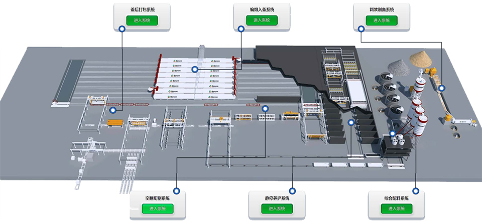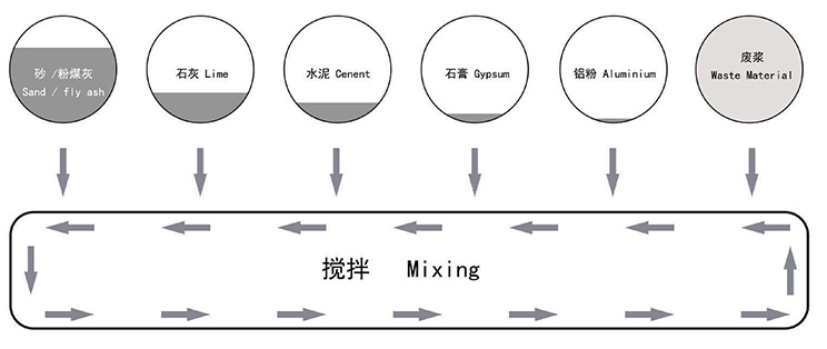 料漿、膠結料、石膏和鋁粉都分別通過相應自動計量稱計量,后在攪拌機內高速攪拌,澆注到模箱后進行氣泡梳理。整個體系由 PLC 系統(tǒng)進行自動控制,保證工序的精確和高效。